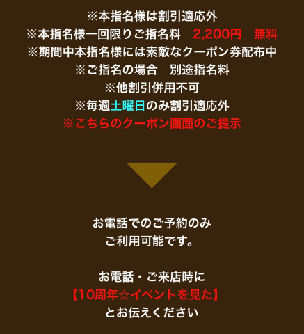 ⚠️本指名様は11月中1回限り(1人の女の子のみ)初回指名料無料&次回来店時に使用可能なお得なクーポン進呈
